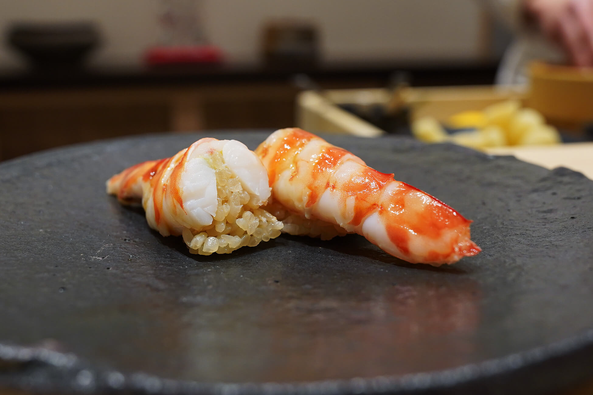 シャリは赤酢を基調に、ほのかな甘みを含ませた仕立て。