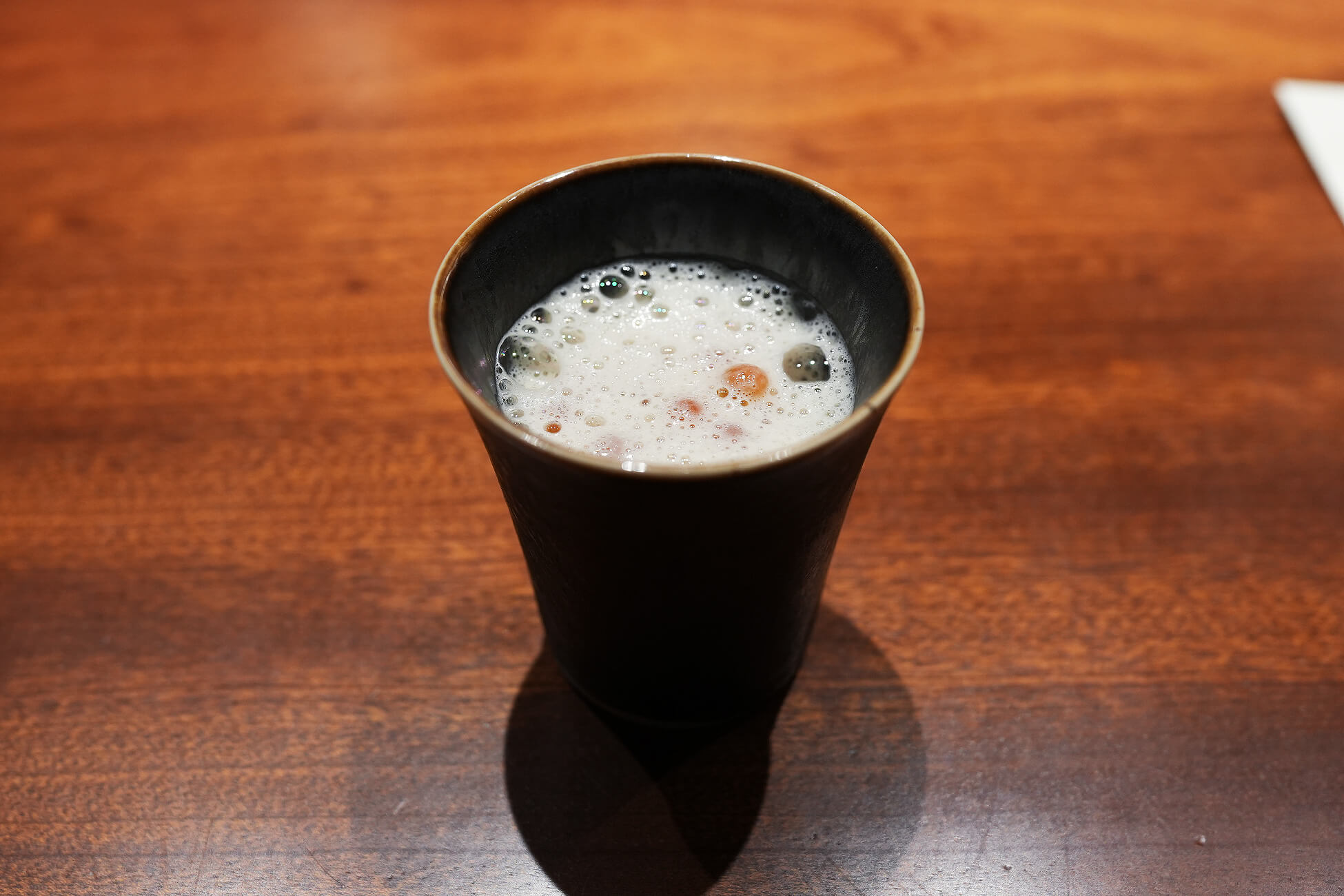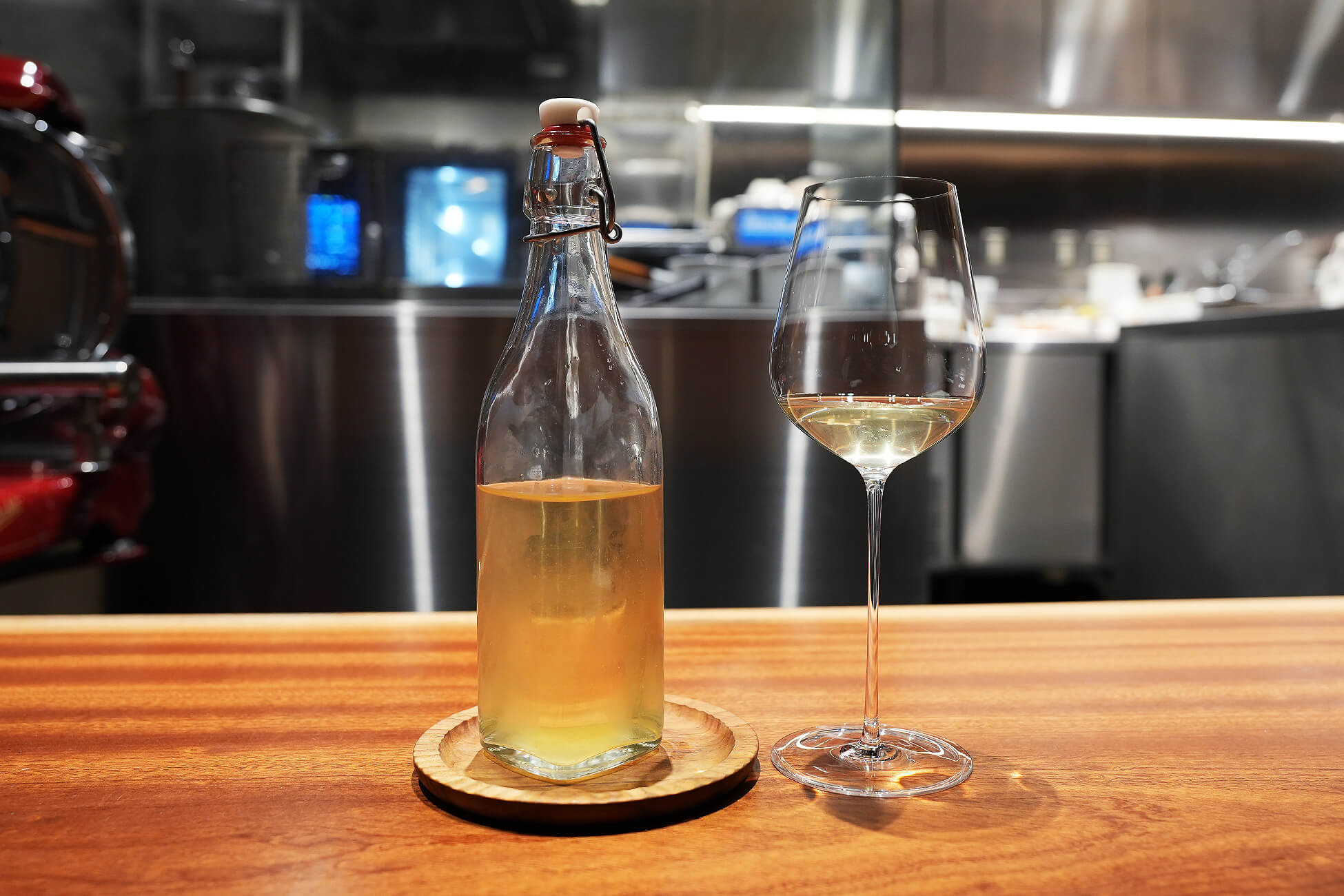 淡いゴールドの濁りがある発酵飲料。微発泡で、口当たりは軽やか。