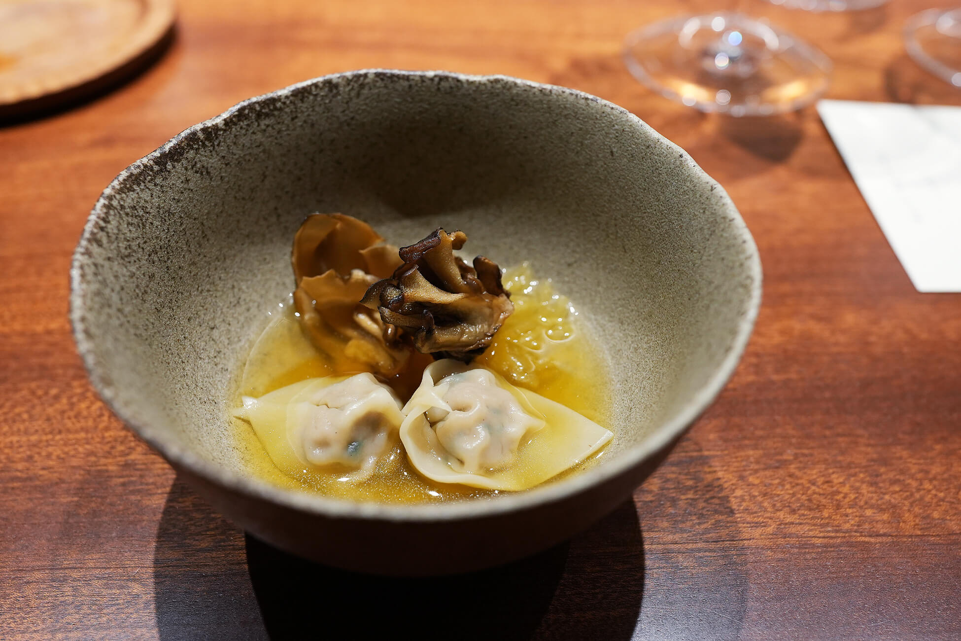 白子の濃厚さと貝の旨み、きのこの歯応えが楽しい。